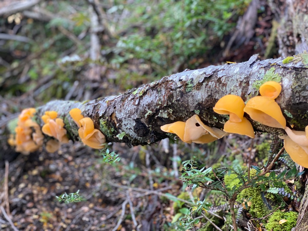 Llao Llao, among many other common names (Cytarria spp.): This is one of the more famous Patagonian mushrooms, with the fruit forming in little balls from a parasitic fungus that inhabits the variety of southern beech trees. It is apparently quite delicious, even made into ice cream and salads, though the variety growing around here tastes a bit like a rubber ball.