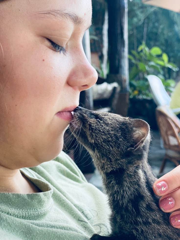 At first we asked the same questions. A civet is a small carnivorous mammal that is native to the tropics of Asia and Africa. Sang had been orphaned when her mother was killed by a machine clearing agricultural fields. She was then taken in by a local woman named Uee. Uee worked at a restaurant, so that was where Sang lived. Everyone at the restaurant seemed to love Sang, both the workers and the guests. Sometimes Uee would let some of the guests hold her and we got to be some of those lucky ones. Although Uee definitely did her best to make sure Sang was happy, I’m sure that it is hard for Sang to live in a plastic carrier, with none of the freedom of her wild life or the company of her own kind. I guess that is the reality for all captive animals. No matter our intentions, we will never know what they truly want or need, and that must be hard.