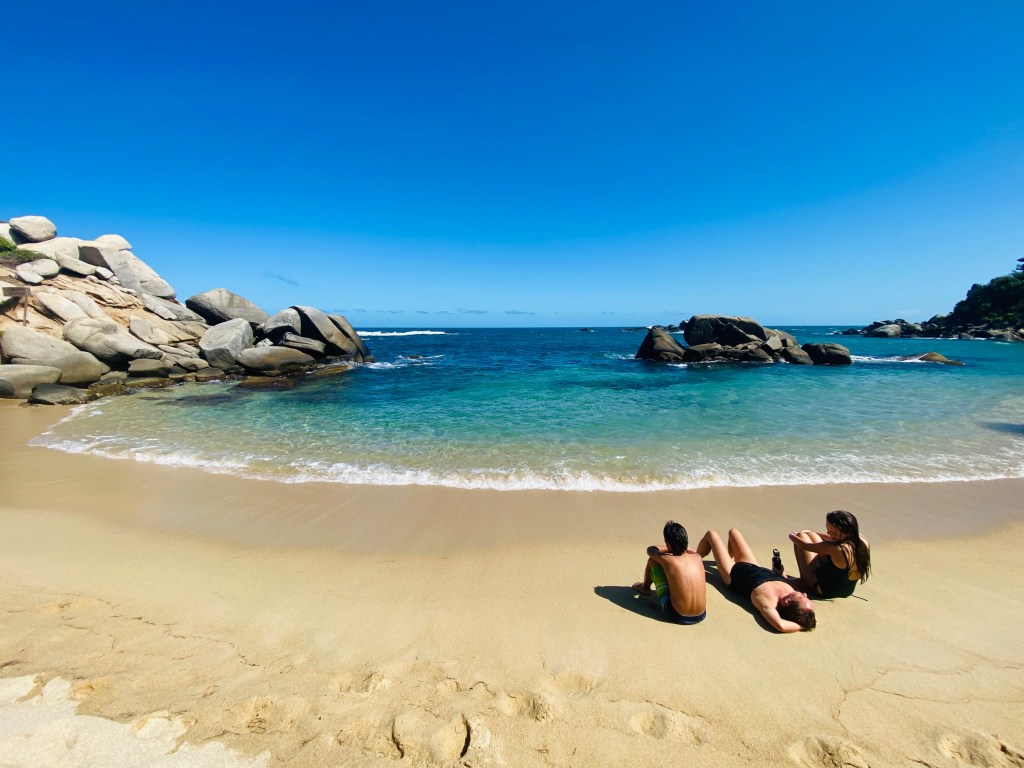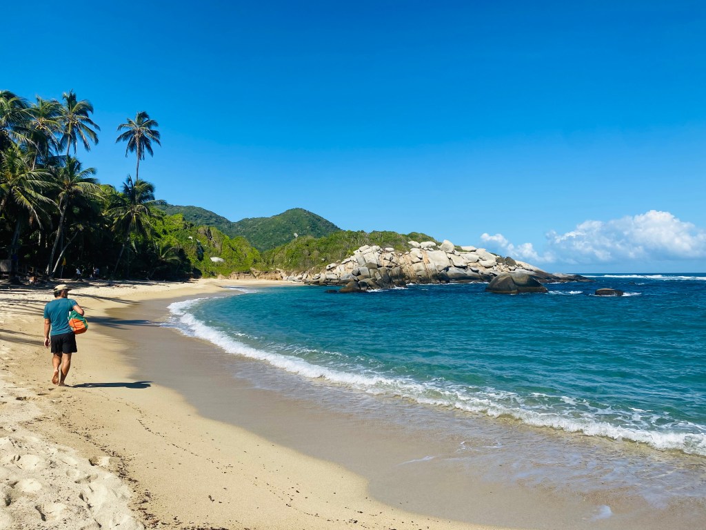 Tayrona is still the given name for the region’s most famous National Park, though Spanish cruelty and overwhelming disease quickly pushed the majority of Tayrona descendants into the higher mountains. Their cities, such as the famed Lost City were quickly devoured by jungle, and legends of El Dorado grew, inspired by the magnificent gold-plated jewelry of the Tayrona people. Tayrona Park preserves stretches of roadless coast bounded by steep jungle and brilliant coves strewn with granite boulders. Our three day coastal hike was one of the highlights of our time in that region. The descendents of the Tayrona (Kogi, Arhuaco, Wiwa, Kankuamo) continue to steward the Sierra Nevada mountains, even reclaiming some previously converted cattle pasture back to diverse tropical rainforest. They protect the forests and the river, and the habitat for our itinerant Tennessee Warbler, a bird that the ancestral Tayrona as well as their modern day descendents would recognize as a seasonal friend.
