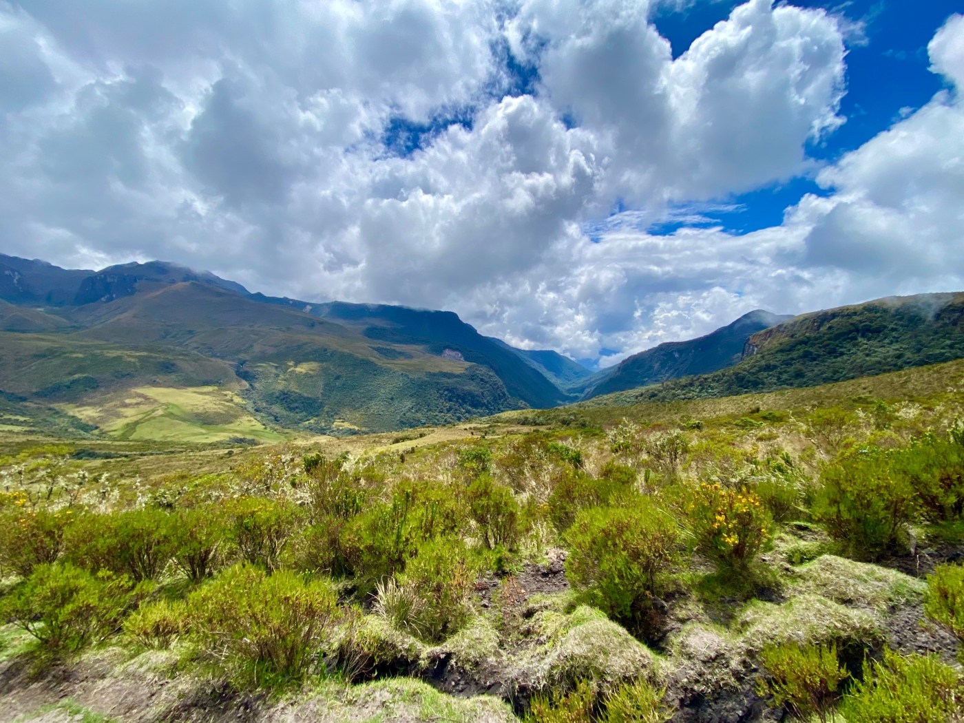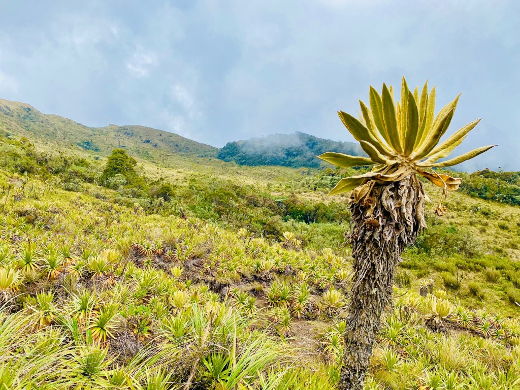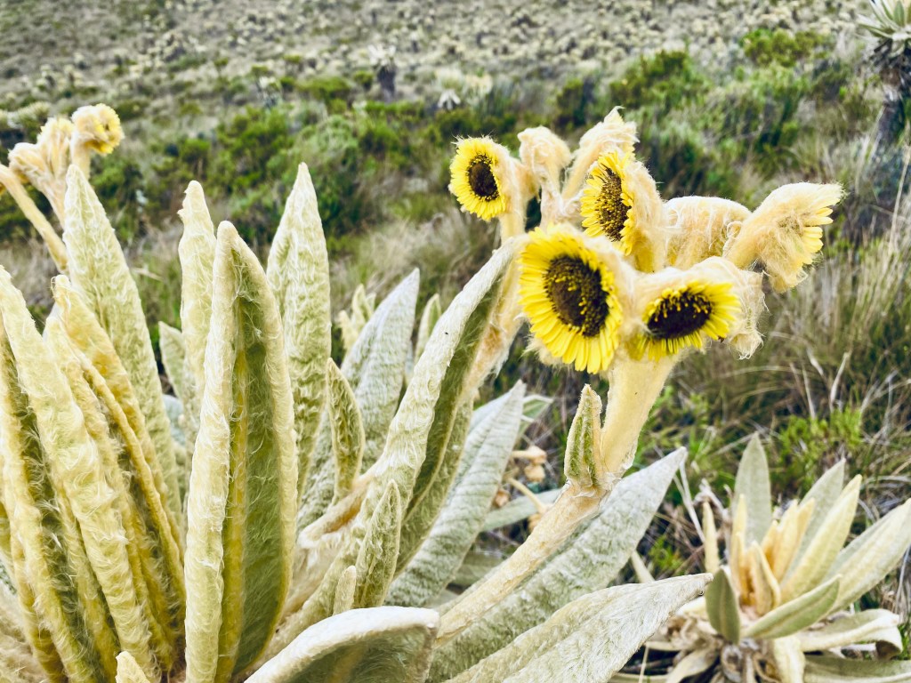 If you have a textured globe, reading the surface like braille, you notice that the tropics are mostly flat, but in three distinct places massive mountains press into your finger tips. These are the world’s tropical alpine zones, and they only exist in Central and Eastern Africa, Indonesia, Papua New Guinea, and, most importantly, in tropical South America. The Andes contain at least 90% of the world’s tropical alpine zones. These zones are reservoirs of endemic species, and also intimately connected to the Amazon rainforest below. They act almost as the rim of a bowl, holding the moisture of the world’s largest rainforest, often in the form of glaciers or wetlands, and slowly releasing it back to the forest. In Colombia, Venezuela, and Ecuador these alpine areas are known as paramos, mystical places draped in fog most of the year, and the haunt of spectacled bears, condors, mountain lions, dwarf deer, and some of the wildest plants such as the frailejones (Espeletia spp.) or the Puya raimundi in Bolivia (there the alpine zones are known as the puna, or altiplano).